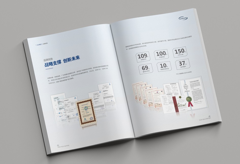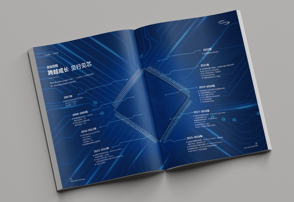 廣立微畫(huà)冊(cè)設(shè)計(jì)以“數(shù)之所指,芯之所向”為主題,分公司簡(jiǎn)介、品牌優(yōu)勢(shì)、公司歷程、產(chǎn)品路線、產(chǎn)品介紹、戰(zhàn)略發(fā)展、社會(huì)責(zé)任幾個(gè)單元依次展開(kāi),圖文并茂,簡(jiǎn)潔大氣,科技感十足!